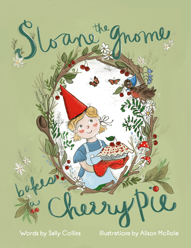 So begins the tale of Sloane the gnome, a cheerful little maker who loves to paint, pickle, quilt, and play. One sunny afternoon, she decides to try something new—baking a cherry pie. But when the sweet, irresistible smell drifts through the forest, Sloane faces an important choice: keep the pie for herself or share it with her woodland friends.